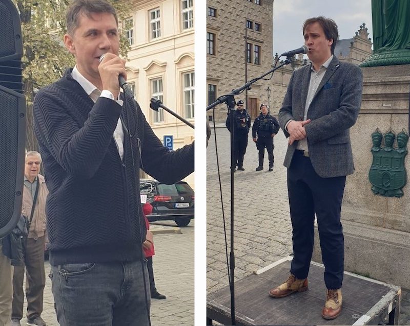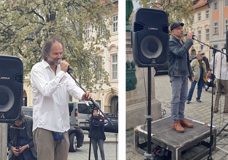 Na pódiu se představili i další řečníci, přičemž šéf hnutí Plán Česká republika na 1. místě Ladislav Vrábel pozval účastníky na mírové akce, které se uskuteční od 30. května do 1. června v Praze a vyvrcholí právě první červnový den veřejným shromážděním za mír na Václavském náměstí (od 13 hodin).