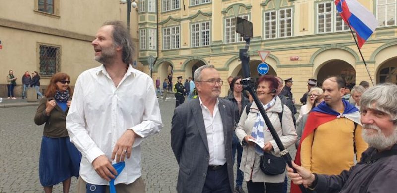 S kritikou se na pódiu připojil i Petr Zuska, dlouholetý umělecký šéf Baletu Národního divadla v Praze. »Kříž je symbolem jednak národní suverenity a jednak křesťanství a budování hodnot naší země. To jsou aspekty, které se nehodí, proto jsou relativizovány, pošlapávány a ničeny. Stejně tak, jako je dohenestováno naše školství, kultura, zdravotnictví a ekonomika, a to v době, kdy se mír stává sprostým slovem a naše vláda i prezident chřestí zbraněmi a regulérně zavlékají zemi do války,« řekl Zuska, který zároveň figuruje na kandidátce PRO – Jindřicha Rajchla k nadcházejícím volbám do Evropského parlamentu.