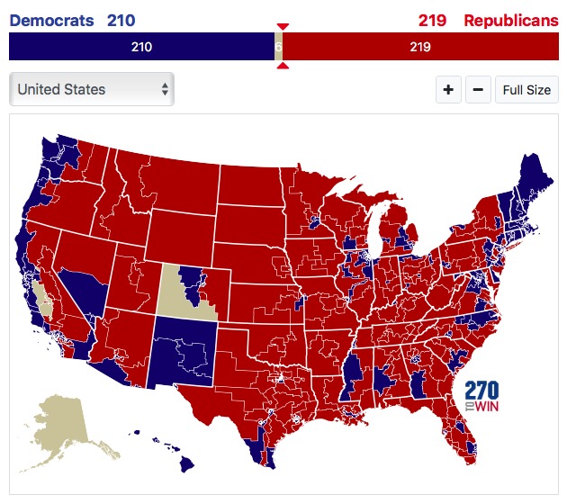 Podle serveru 270towin.com mají Republikáni již potvrzených 219 křesel.