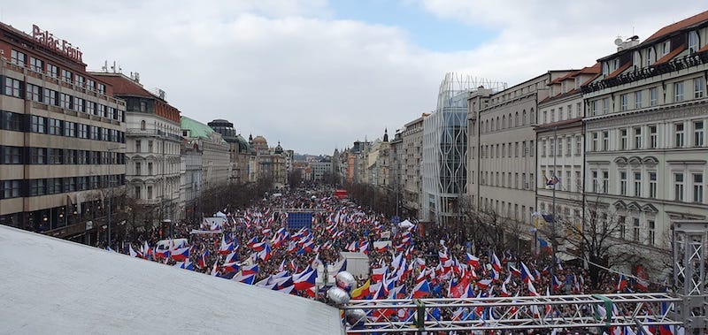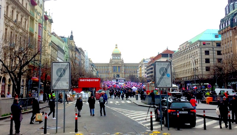 Sobotní demonstrace na Václavském náměstí