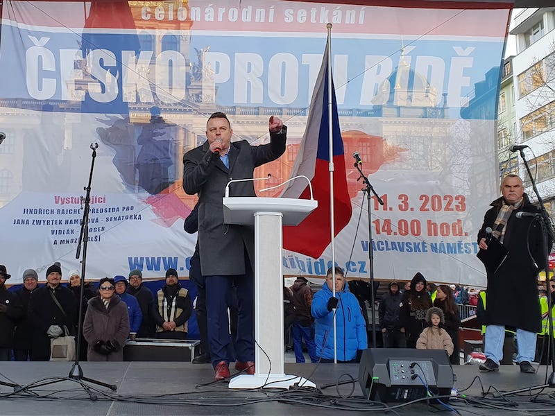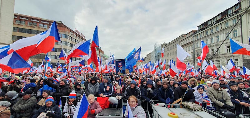 Na protivládní demonstraci pořádanou Jindřichem Rajchlem a stranou PRO se v sobotu podle různých odhadů sešlo 20 až 30 tisíc lidí.