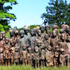 foto: Pomník dětem odvezeným na převýchovu po vyhlazení obce Lidice. „Převýchova“ proběhla ve zplynovávacím autě koncentračního tábora Chlemno. Bronzová socha od Marie Uchytilové. Autor fotografie: Cybermud CC-BY-SA-3.0