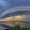 Dnes po extrémním nedělním horku den plný bouřek a různých meteorologických jevů, v Praze roll cloud, na fotografii čelo přicházející bouřky, tzv. shelf cloud na Pálavě.