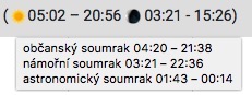 - občanský soumrak: obvyklá doba soumraku