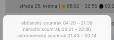 , nebo podržením prstu na slunci na telefonu, se vám zobrazí časy různých druhů soumraků, resp. rozednívání