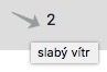 Po najetí myši bez kliknutí nad šipku zobrazující směr větru, nebo podržením prstu na šipce na telefonu, se vám zobrazí označení síly větru.